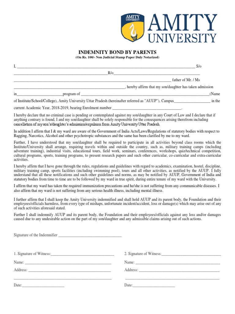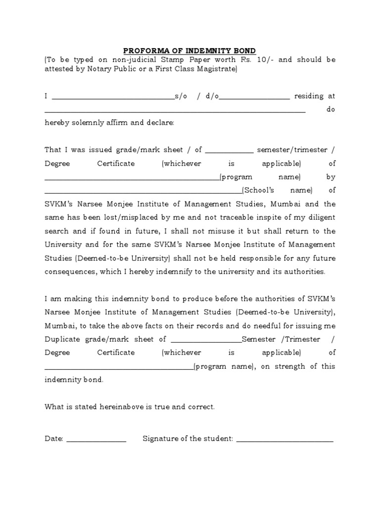 Non Judicial Stamp Paper Indemnity Bond / 100 for indemnity bond, guarantee bond.note: Non Judicial Stamp Paper Indemnity Bond : Or on account of any reason directly or indirectly attributable to me within a period of.
